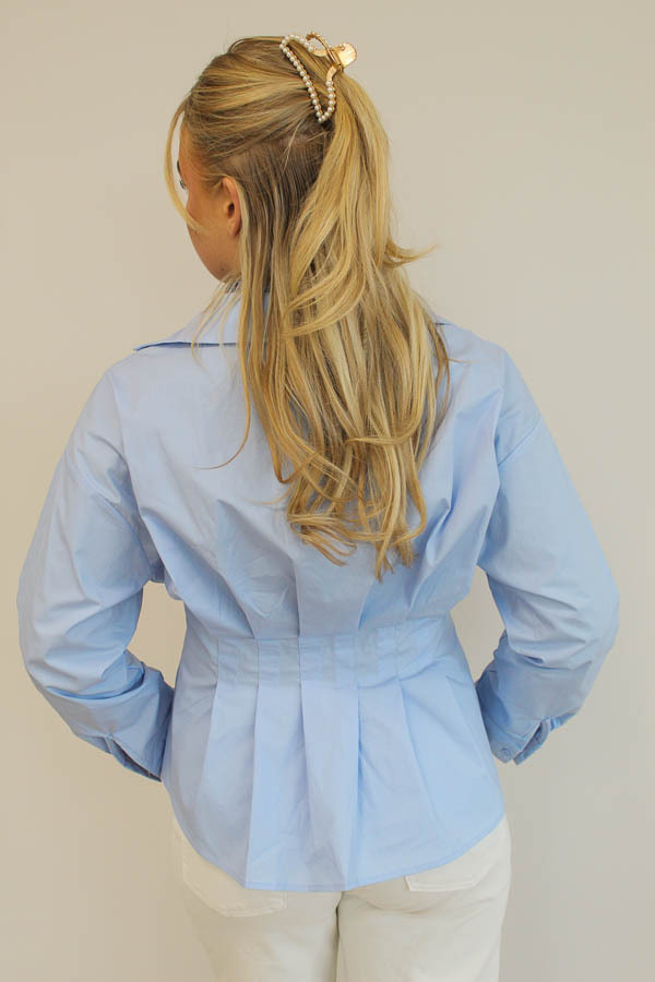 Een mooie shaped blouse met een elegante pasvorm die het silhouet prachtig volgt. De knoopsluiting geeft de blouse een tijdloze en verzorgde uitstraling, ideaal voor zowel casual als geklede looks.