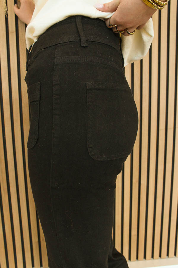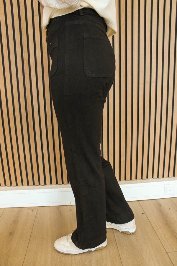 Wij hebben verschillende soorten jeans in kleine wide, grote wide en deze mogen wij dan een straight-wide jeans noemen. Maar wel ééntje met lekker veel stretch ook en goede pasvorm, hoge tailleband met dubbele knoop. Shop deze nu en combineer het met onze najaarskleur truitjes!