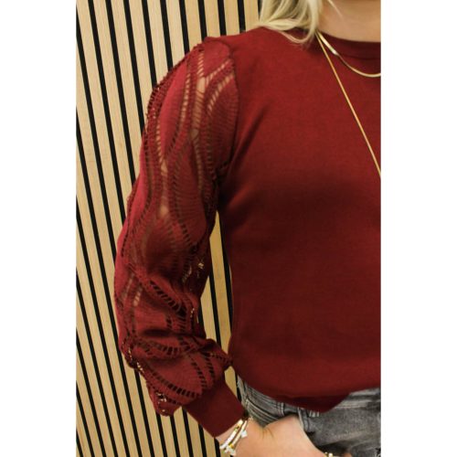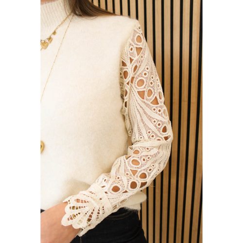 Een fijngebreide truitje met lurex (glitter) in verwerkt. Deze heeft knoopjes en volant mouwen. Heel erg leuk te combineren voor een feestelijk gelegenheid of straks met de feestdagen voor op een pantalon of rok!