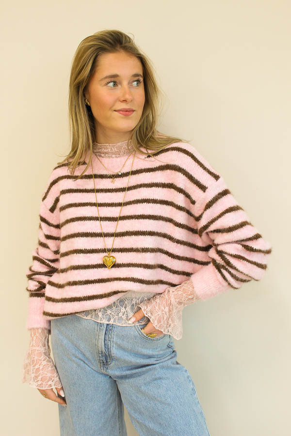 Trui gestreept roze | Eliane