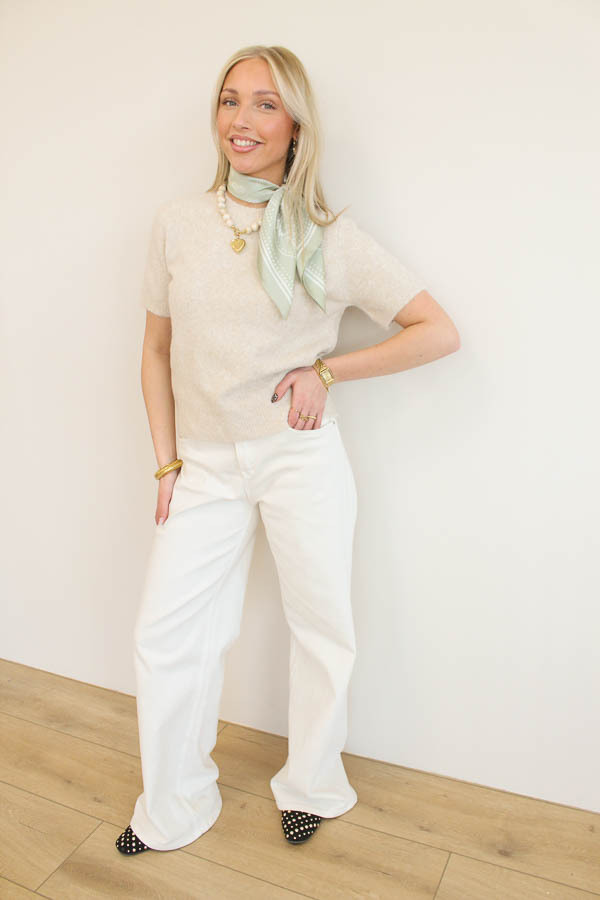 Trui korte mouw beige | Laura