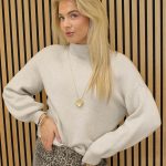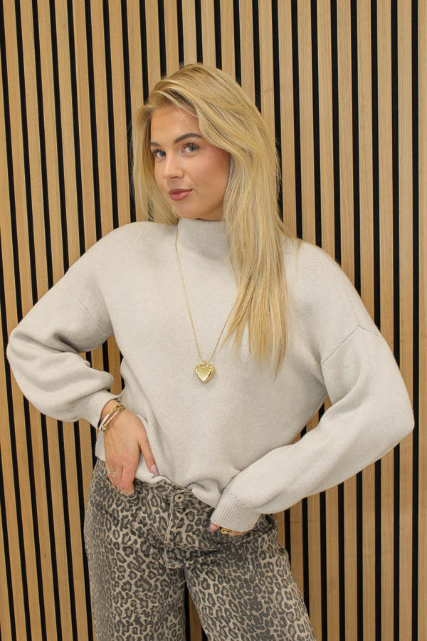 Trui met hoge kraag met mooie kwaliteit viscose en pofmouwen. Deze trui heeft een korte lengte en kan goed op een hoge taille broek of rok. Onze bestverkochte item in de winkel en is verkrijgbaar in meerdere kleuren. Tip: De kraag kan je naar binnen omslaan als je hem te hoog vind. Zie foto hoe Iris deze trui draagt.