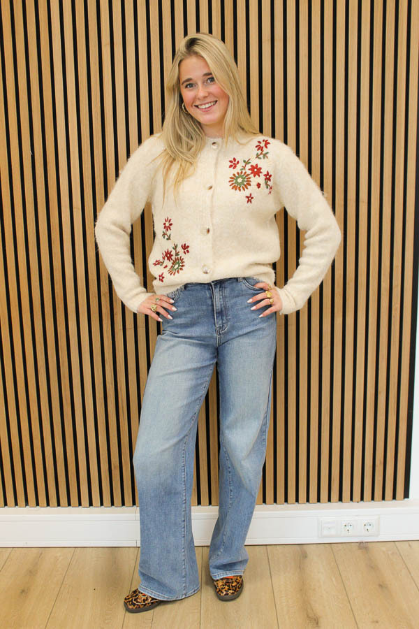 Vest bloemen ecru | Fleur
