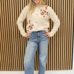 Een fluffy vest met knopen ook prima als truitje dicht te dragen met mooie herfst kleuren bloemetjes