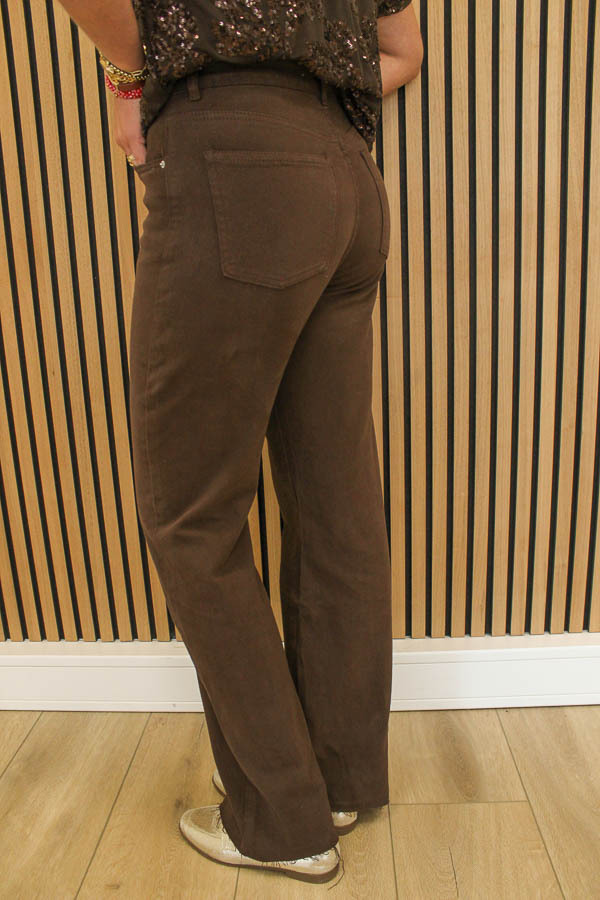 Deze wide leg jeans is net binnen én bruin is op dit moment de trend kleur in jeans. Wij hebben ruime keuze in jeans modellen. Deze wide leg jeans heeft een goede pasvorm, lekker stretch én aan de onderkant niet genaaid. Ons model is 1.79 en draagt voor de lengte een maat 38(M). Binnen beenlengte is 84 cm van de jeans. Indien je kleiner bent dan en de broek korter wil kan je deze met een een textielschaar de lengte knippen naar wens! Een tip!