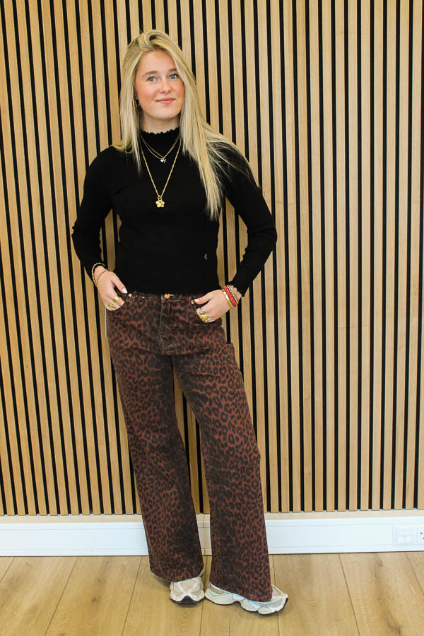 Gave wide leg jeans met lekker comfy stretch én panterprint. Deze is in de trendkleur bordeauxrood en past perfect met de tops en truien uit onze herfstcollectie!