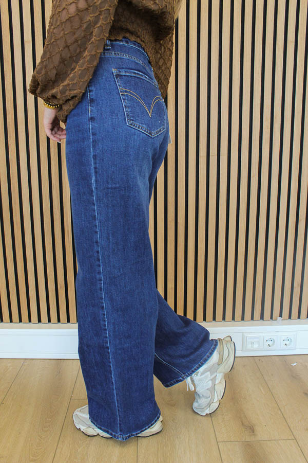 Een wide- straight leg jeans, fijne denim stof voor de lente met lekker veel stretch. Deze heeft een comfy pasvorm en valt goed naar maat! Broek heeft wijdere pijpen en heeft een hoge taille. Bestseller!