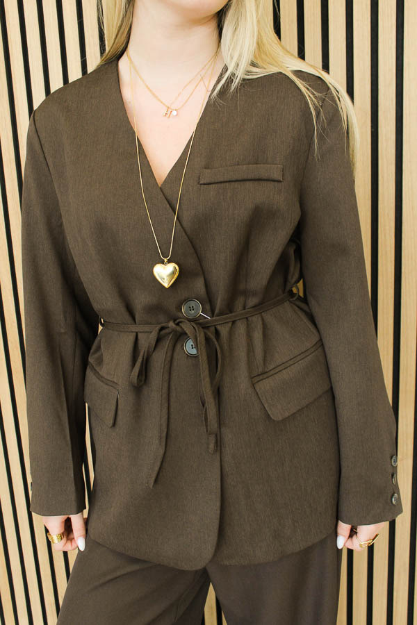 Als je op zoek bent naar een trendy en veelzijdige blazer, dan is deze blazer precies wat je nodig hebt. Deze moderne blazer heeft een ceintuur rond de taille voor een vrouwelijke en gestructureerde look. Het design met knopen en twee praktische zakken maakt de blazer zowel stijlvol als functioneel, perfect voor zowel werk als vrije tijd.